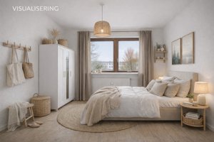 Delevenlig og alsidig bolig med god plads<br> Lejligheden byder på en gennemtænkt planløsning, som gør den oplagt til både par og som delebolig. De to store værelser giver begge rigelig plads til seng, opbevaring og personlig indretning – ingen kompromiser her! Dertil kommer et ekstra værelse, som kan fungere perfekt som hjemmekontor, gæsteværelse, hobbyrum eller børneværelse.<br> Den rummelige entré giver masser af opbevaringsplads, mens køkkenet er praktisk indrettet med god skabsplads og installation til både opvaskemaskine, vaskemaskine og tørretumbler – ideelt til en travl hverdag. Stuen er lys og indbydende med et skønt kig over området og grønne omgivelser.