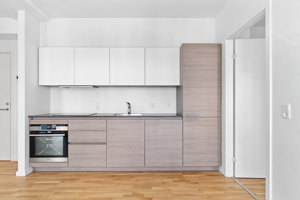 Here you will find apartments from 64 to 151 square meters and from the 1st to the 5th floor – most apartments with their own balcony and access to a shared roof terrace overlooking the city of smiles. The apartments are with beautiful, matt lacquered oak parquet floors, elegant kitchens from Rotpunkt, appliances from Siemens and bathroom with Grohe fixtures, as well as there is an intercom with video and elevator in all buildings.