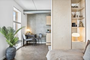 Teglgårdens studiolejligheder er et moderne small living-koncept til dig, der drømmer om en hverdag med færre forpligtelser og mere frihed. Her bor du i hjertet af Trælasten i et bæredygtigt byggeri med fokus på fællesskab, kvalitet og nærvær.