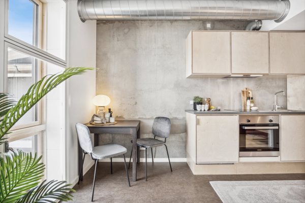 De velindrettede 1-værelses lejligheder udnytter hver eneste kvadratmeter optimalt. De fleksible multimøbler samler flere funktioner i ét og skaber en overraskende fornemmelse af plads trods det kompakte format. Det giver dig mulighed for at bo mindre, men leve større – med mere tid til rejser, oplevelser, naturen og byens puls.