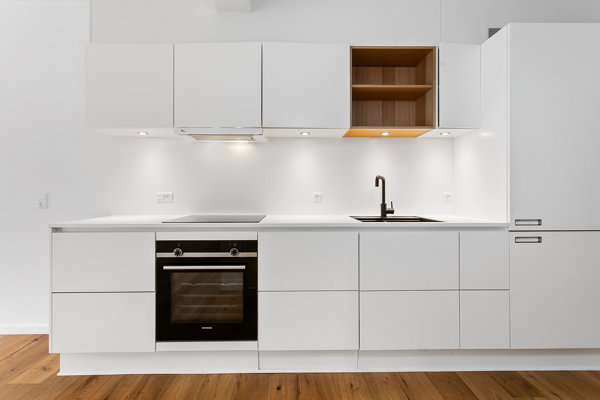 Ejendommen er tegnet af CEBRA arkitekterne og opført med kvalitet som rettesnor. Boligerne er blandt andet udstyret med køkkener fra Svane Køkkenet, som er en nyfortolkning af det grebsløse hvide køkken. Der er lagt vægt på detaljerne med ekstra dybe skuffer med soft luk og fuldt udtræk, 20 mm bordplade og underlimet sort vask, der matcher det sorte armatur. Alle hårde hvidevarer er fra Siemens. Der er elevator til din indgangsdør, smukke egetræsgulve med gulvvarme og et flot badeværelse.