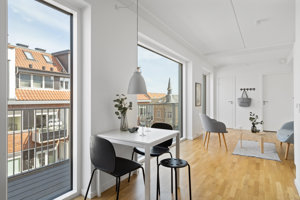 Her får du en delevenlig bolig med en attraktiv placering i indre by – tæt på indkøb, caféer og det pulserende byliv. Boligen egner sig perfekt til to studerende eller den lille familie.