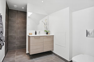 Lejligheden har to gode regulære værelser samt et stort badeværelse med god opbevaringsplads.