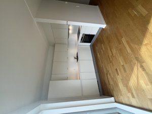 Her træder du ind i entreen hvor der er god plads til sko og overtøj. Videre træder du ind i det store køkken alrum, hvor der er et skønt lysindfald fra de store vinduespartier samt direkte udgang til altanen.