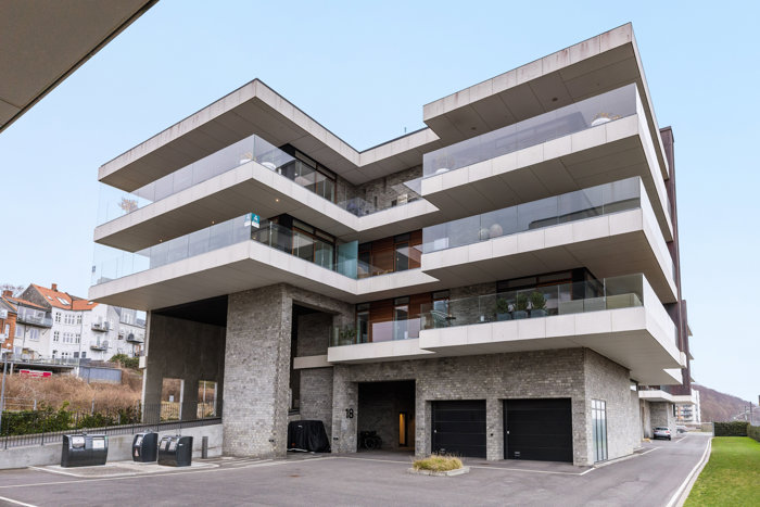 På spidsen af Ø4 ligger denne prisbelønnede ejendom fra 2019, hvor BIG’s trappede AA-tårne giver alle beboere sol, havudsigt og private altaner. Samtidig bliver I en del af en veldrevet forening med beboerhus, taghaver og gårdmiljø, der skaber et aktivt nabofællesskab – og jeres panorama fra tredje sal rækker ud over hav, promenade og Aarhus tage.