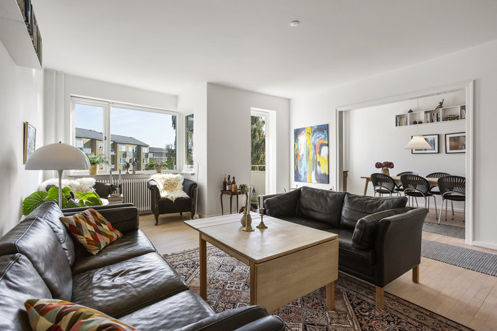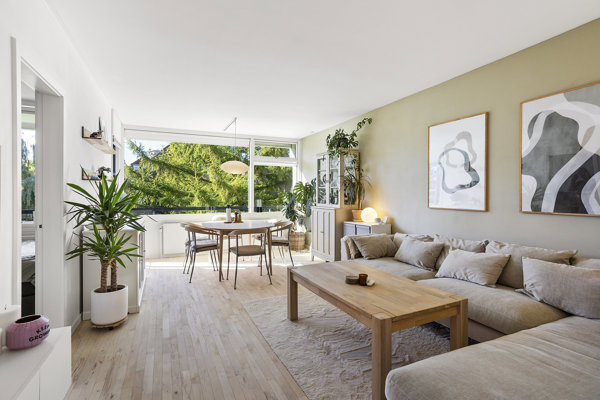 "Den store flotte stue er hjertet af lejligheden med en helt fantastisk udsigt."