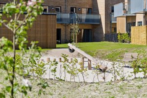 Lisbjerg - There is a light rail stop 100 m from the building, good bus connections, Lisbjerg School and daycare is 200 m away, super bike path and highway access are quite close, and there are leisure facilities such as ball fields and padel center. Here you get it all combined. You're also only 18 minutes from the center of Aarhus C.