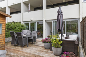 Som en ekstra bonus byder lejligheden på to udestuer, der giver mulighed for at nyde lyset og udelivet året rundt.