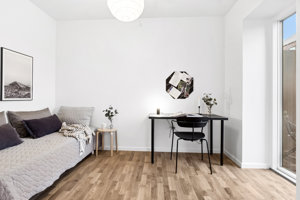 Her får du 2 skønne værelser, et stort køkken alrum hvor der både er plads til spisebord og sofaarrangement. Derudover et rummeligt badeværelse.
