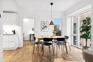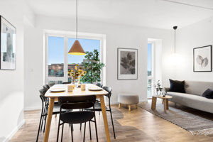 Uanset om du er en børnefamilie, et ungt par, studerende eller senior, vil vores lejligheder imødekomme dine behov med moderne køkkener og badeværelser, gulvvarme og smagfulde detaljer, der skaber en sammenhængende nordisk designoplevelse.