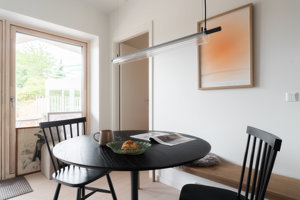 Denne 2-værelses lejlighed på 62 m² i det nye boligprojekt Solbrinken er indrettet med fokus på både funktionalitet og komfort. Lejligheden byder på et lyst og åbent opholdsrum med sandfarvet HTH-køkken, der er udstyret med ovn, kølefryseskab, opvaskemaskine og induktionskogeplade. På badeværelset er der gulvvarme, og der er gjort klar til vaskesøjle. Hele boligen er gennemgående belagt med elegante Pergo-laminatgulve, der giver et stilrent udtryk.