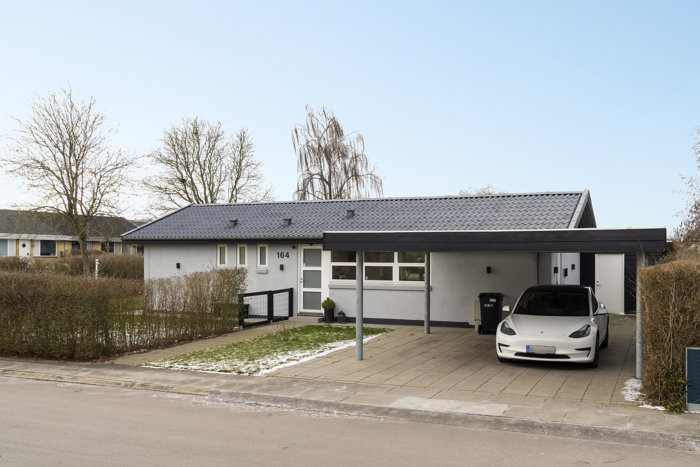 Ejendommen har endvidere en nyere carport med integreret skur og smukt sedumtag.