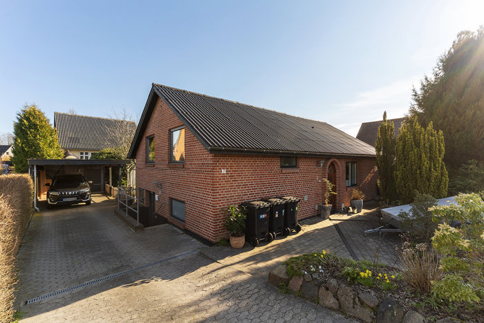 Haven og terrassen indbyder til afslapning under åben himmel. Her får du grønne opholdsarealer, privat terrasse og god plads til udendørsaktiviteter året rundt.