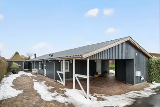 Den store udestue og den grønne have giver mulighed for udeliv året rundt. Her forenes naturrum og ophold under åben himmel på bedste vis.