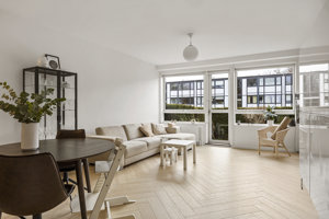 Det store og moderne køkken fra ca. 2018 fremstår stilrent og funktionelt med god skabs- og bordplads. Badeværelset er rummeligt og totalistandsat i 2025. Lejligheden er gennemrenoveret for ca. 6 år siden og fremstår indflytningsklar med flotte sildebensgulve, der giver boligen et eksklusivt og tidløst udtryk.