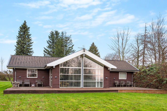 Terrasserne omkring huset giver mulighed for at nyde udendørslivet. Fra den overdækkede terrasse er der udsigt til haven, hvilket gør den ideel til hygge året rundt.