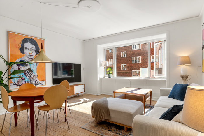 Det er en stor fornøjelse, at danbolig nu kan præsentere denne lyse og indbydende treværelses ejerlejlighed i hjertet af Gentofte – et hjem, hvor du er få skridt fra caféer, søen og det levende byliv. En oplagt bolig for solisten, parret eller din lille familie, der ønsker en bynær beliggenhed med det hele lige om hjørnet. Du finder næppe skønnere rammer i Gentofte. Her bor du i gåafstand til alt det, der gør hverdagen lettere og livet lidt sødere. Indkøb, specialforretninger, hyggelige caféer og Gentoftegade ligger bogstavelig talt lige rundt om hjørnet. Du kan nemt snuppe en to-go-kaffe og gå en tur ved søen, eller hoppe på cyklen til S-toget, stranden ved Charlottenlund Strandpark eller de grønne stier i Bernstorff Slotshave. Tilbage på adressen leves hverdagen let. Ejendommen er fra 1984 og fremstår klassisk med tidstypisk arkitektur, hvor okkerfarvede mursten og sorte trædetaljer matcher kvarterets stilfulde udtryk. Her får du glæde af din helt egen private gårdhave, som hurtigt bliver et yndlingssted samt din egen private parkeringsplads. Din gårdhave er en lille oase, afskærmet af beplantning og rækværk, hvor du kan trække dig tilbage med en bog, morgenkaffen eller gode venner om bordet. Den vender mod øst, så du får glæde af dagens første solstråler, der følger dig langt hen på eftermiddagen. Det er stedet, hvor hverdagen får lov til at falde til ro. Indendørs venter 73 m² med lyse, rummelige rum, der er nemme at indrette. De mange vinduer – herunder ovenlysvinduerne – skaber et skønt lysindfald, der giver hjemmet en ekstra dimension. Planløsningen giver dig to gode værelser med plads til soveværelse, hjemmekontor, walk-in eller et mindre børneværelse samt et lyst badeværelse med stilrene møbler og vaskefaciliteter. Boligens hjerte er opholdsrummet, hvor køkken, alrum og stue flyder sammen i et åbent, harmonisk rum. Køkkenet står i bløde nuancer med god bord- og skabsplads, mens alrummet giver plads til spisebordet, hvor måltider og hverdagsliv samles. Herfra har du åben forbindelse til stuen, som nemt indrettes med sofa og lænestole, der skaber rammerne for de rolige og hyggelige stunder. Kort sagt: en lys 3V’er midt i Gentofte med privat have, egen parkeringsplads, to værelser og et åbent opholdsrum. Du bor tæt på søen, indkøb, caféer og transport – et hjem, der kombinerer byliv, hverdag og ro.