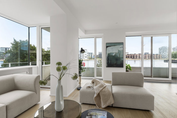 Der er kun 9 lejligheder i Strandlund der har ekstra kvm og mulighed for 2 soveværelser, dette er 1 af dem.