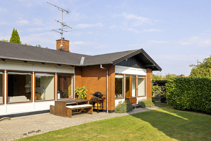 Udendørs finder du en dejlig og velplejet have med grøn græsplæne, solrig terrasse og rig mulighed for at nyde livet i det fri. Her er der plads til både børneleg, grillhygge, grønne fingre osv. Til huset hører også en stor, muret garage med plads til bil og ekstra opbevaring.