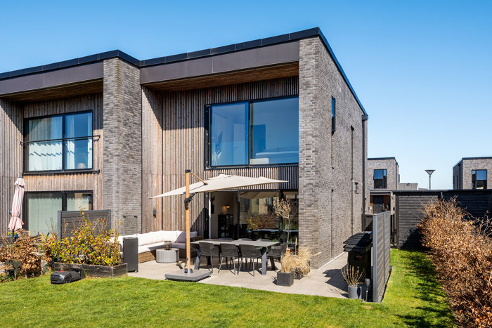 Moderne facade og lukket have