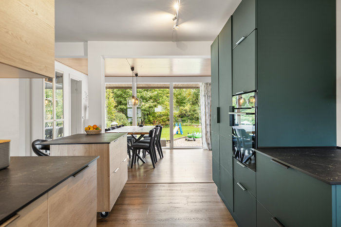Køkkenet er lyst med vindue og adgang til bryggers, hvilket giver praktiske muligheder og en optimal placering tæt på boligens samlingspunkter.