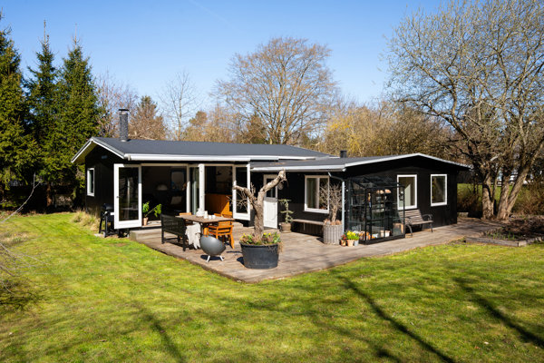 Den grønne have danner et indbydende uderum med flere hyggelige kroge, rummeligt anneks og masser af plads til afslapning. Facaden byder på store vinduer og terrasser, hvor man kan nyde både sol og skygge samt den rolige stemning.