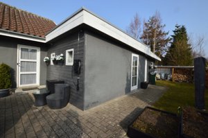 Udendørs venter en dejlig og velplejet have med grønne omgivelser og god plads til både afslapning og udeliv. Her er samtidig gode opbevaringsmuligheder i både værksted/udhus.