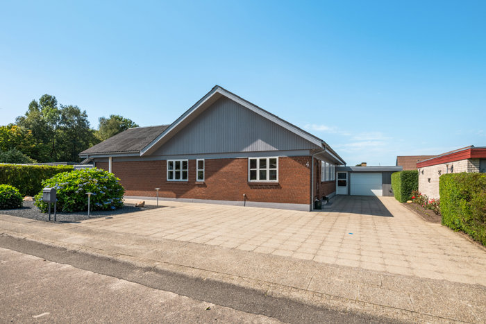 Villaen er omkranset af den skønneste have, hvis grønne beplantning kræver minimal pasning og pleje. Her får I bl.a. to hyggelige terrasser med masser af sol, og på grunden er der desuden også en god garage med værksted, som kan benyttes lige præcis, som I ønsker.