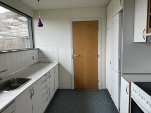 Indretning: Entre med skabe. Bryggers. Køkken. Opholdsstue med udgang til overdækket terrasse. Gæstetoilet med hvide fliser. Værelse med skabe. Mellemgang med ovenlys. 2 værelser med skabe. Badeværelse med badekar og bruser. Soveværelse med adgang til garderoberum.