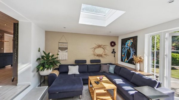 Køkkenet er velholdt, og her kan I snildt have børnene med til madlavningen. I åben forbindelse udfolder spiseområdet sig, og herefter skal I opleve den fantastiske dagligstue. Denne er placeret et niveau længere nede, og her er gulvvarme, store ovenlysvinduer og en terrassedør fra 2020, der alt sammen giver et henrivende lys og varme.