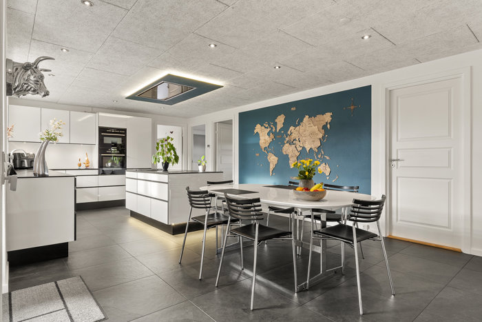 I boligens hjerte finder I en indbydende stue og spisestue med et skønt lysindfald og en naturlig sammenhæng. Her er plads til både hverdag og gæster, og rummenes størrelse gør det nemt at indrette personligt og funktionelt. Køkkenet er velplaceret tæt ved spiseområdet og byder på praktisk opbevaring. I kælderen venter et stort og højloftet multirum med masser af anvendelsesmuligheder – ideelt til legerum, hobby, hjemmegym eller teenageafdeling.