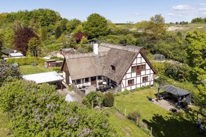 Boligen fremtræder romantisk i den rene Morten Korch-idyl, og beliggenheden er også af den charmerende slags midt i ‘de sjællandske alper’. I får med andre ord masser af natur og et rigt dyreliv på grunden, som er tæt på Maglesø.