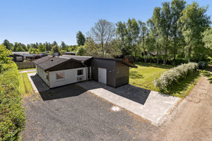 Den store, grønne have indbyder til udeliv året rundt. Fra terrassen er der udsigt til frodige træer og gode rammer for afslapning og samvær i private omgivelser.