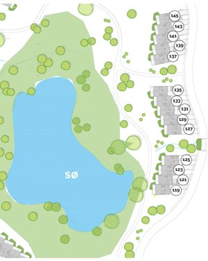 Her venter de kommende beboer skøn udsigt til stor sø og skov ligesom man får en flot natur helt ind i stuerne.