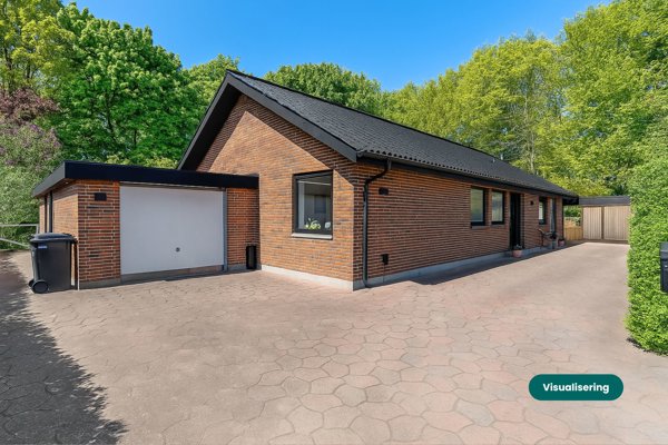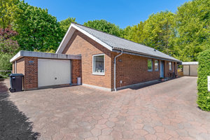 Udenfor venter en dejlig have, der primært er anlagt med græs, så den er let at holde. Den store flisebelagte terrasse på husets bagside danner rammen om hyggelige uderum med en charmerende gårdhavefornemmelse – perfekt til grillmiddage og afslapning i solen. Til ejendommen hører desuden en carport med tilhørende redskabsskur, så der er styr på opbevaringen.