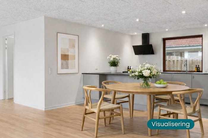 I 2019 blev boligen opdateret med nye gulve og lofter, ligesom tag, spær og efterisolering blev udført, hvilket bidrager til både komfort og kvalitet. Som en ekstra luksus får I en integreret udestue på 19 m², som ligger udover boligens kvadratmeter. Udestuen fungerer som et ekstra opholdsrum, hvor inde og ude smelter sammen, og hvor årstidernes skiften kan nydes i rolige og indbydende rammer.