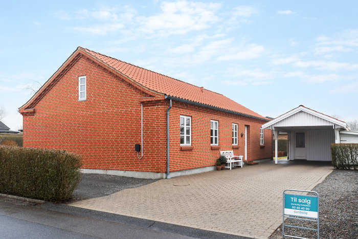 Foran stue og udestue venter en solrig terrasse, der ligger ugeneret og indbyder til afslapning fra morgen til aften. Haven er smukt anlagt med græs, hække og dekorative bede og kræver minimal vedligeholdelse, samtidig med at den danner en elegant ramme om udelivet. Under husets tag råder I desuden over carport og redskabsrum.