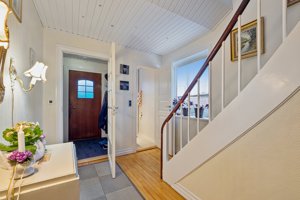 Boligen rummer 126 m² fordelt på stueplan og første sal. Stueplan byder på en lys entré, som leder videre gennem et gangareal med gæstetoilet og trappe til 1. sal, samt til alrum og køkken.