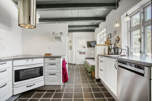 Køkkenet er fra 2010 og er lyst og rummeligt med spiseplads og masser af muligheder. I forlængelse af gangen ligger et bryggers med plads til vaskefaciliteter og opbevaring. Badeværelset er indrettet med badekar og har en praktisk størrelse til daglig brug.