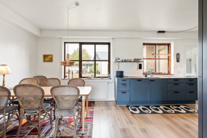 Husets stue og køkkenalrum er rummelige og lyse med gode opholdsrum til hele familien.
