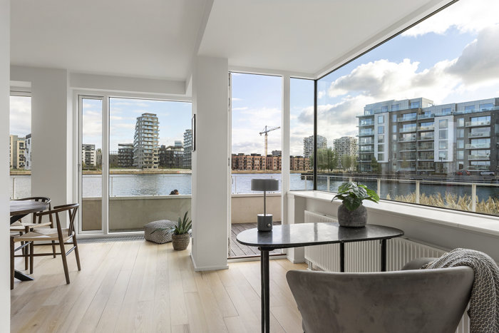 Ejendommen er moderne med elevator, cykelparkering og grønne fællesområder. Du bor tæt på vand, by og natur – med kort afstand til metro, havnebad, butikker og caféer. En unik lejlighed med ekstraordinært uderum midt i København.