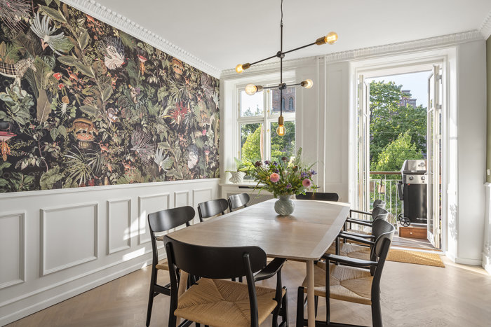 Her er tale om en lejlighed i to plan på samlet 164 etagemeter fordelt på 94 m2 bolig på førstesalen og en tinglyst andensal på 70 m2. Bygningen blev renoveret i 2023-2024, hvor den blandt andet fik nyt tag og nye vinduer. Lejligheden blev også totalrenoveret indvendigt og står særdeles indbydende med blandt andet et drønlækkert uno form-køkken, flotte plankegulve med varme under og indvendig trappe til andensalen. Alt står flot og skarpt, og lejligheden emmer af kvalitet og god stemning.