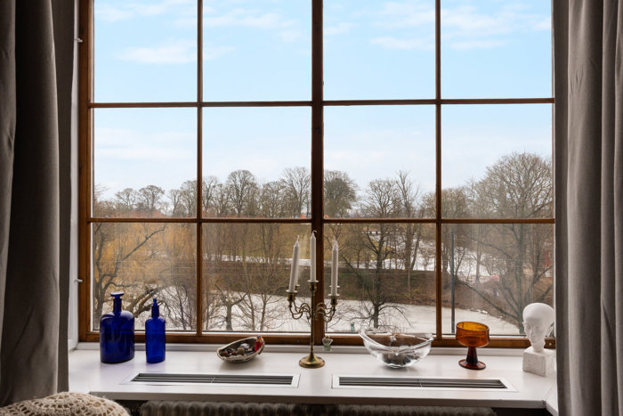 En klassisk og yderst veldisponeret københavnerlejlighed med altan, charme og en beliggenhed, der sjældent fås bedre.