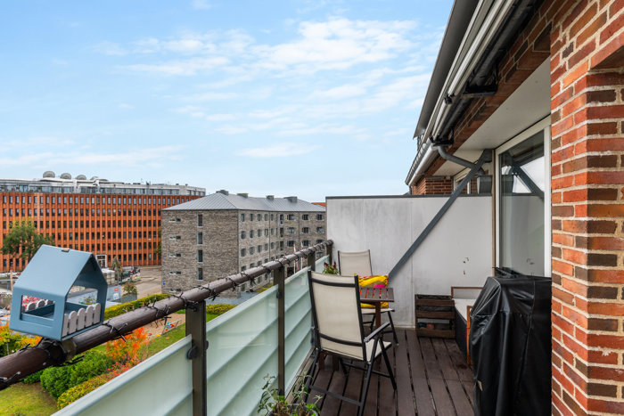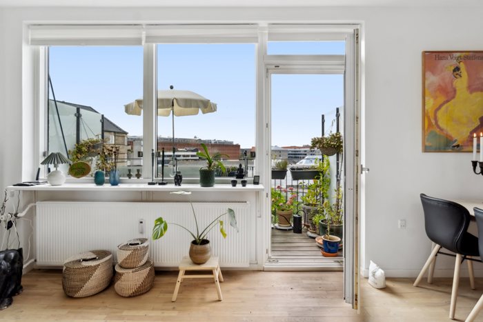 Lejligheden ligger fredeligt på Fadet – en bilfri gade midt i Carlsberg Byen, hvor man er tæt på byens liv uden at blive generet af trafikstøj. Med terrassedøren åben træder man direkte ud i Carlsberg Byens unikke atmosfære, hvor byliv og grønne omgivelser går hånd i hånd. Her bor du lige ud til J. C. Jacobsens Have og er tæt på caféer, specialbutikker, skole, institutioner, grønne områder og offentlig transport – og får samtidig følelsen af ro og hjemlighed lige uden for døren.
