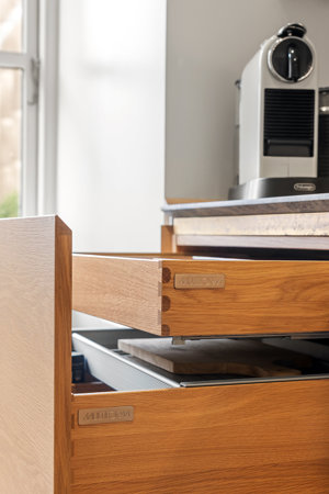 Lejlighedens hjerte er det smukke Multiform-køkken – en sjælden luksus i denne type ejendom. Her går æstetik og funktionalitet hånd i hånd med snedkerkvalitet, fingertappede skuffer og eksklusive hårde hvidevarer. Der er både vaskemaskine og opvaskemaskine, integreret i det elegante design. Rummet er lyst, lækkert og fuldendt med ny elinstallation, stilrene linjer og en atmosfære, der gør hverdagen til en fornøjelse.