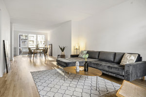 Boligen byder på et imponerende køkken-alrum med stue i ét, tre gode soveværelser og et badeværelse i flotte materialer. Allerede i entréen fornemmer du rummeligheden – her er god plads til både sko, overtøj og opbevaring. Det store køkken-alrum er hjemmets naturlige samlingspunkt. Køkkenet ligger mod gården og fremstår stilrent i lys grå med corianbordplade og masser af skabsplads. Her er samtidig plads til et stort spisebord, uden at det optager plads i stuen – perfekt til både hverdagsliv og gæster.