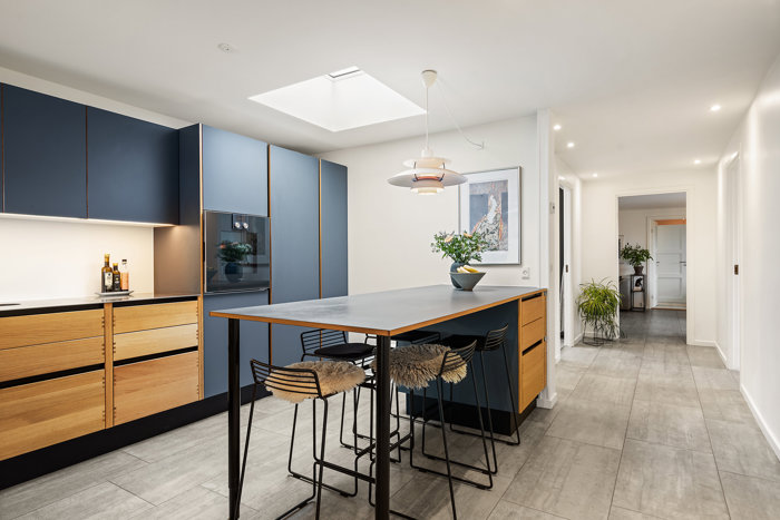 Der er gode muligheder for at flytte køkkenet ind i stuen og etablere et moderne køkken-alrum, samtidig med at der kan indrettes et ekstra værelse i stueplan.