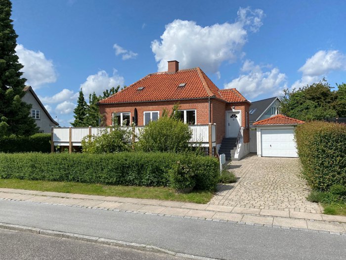 Klassisk rødstensvilla med et flot lysindfald, indbydende terrasse og god forbindelse til haven. Perfekt til afslapning og hygge i grønne omgivelser.
