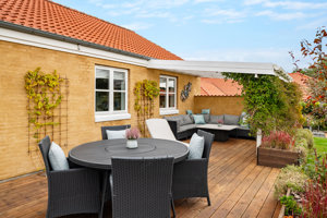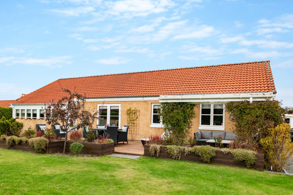 Her får du flere solrige terrasser og en indbydende have med frodige bede og grønne buske. Terrasserne vender mod sydvest, hvilket giver optimale rammer for udeliv og afslapning.