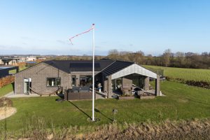 Der er ingen finger at sætte på boligen, og den ledsages af en 67 kvm stor garage, der også har gulvvarme og dermed er utrolig anvendelig. Udendørs præsenteres I for en af udstykningens største grunde, og den bades i sol fra morgen til aften og giver plads til leg og aktiviteter såvel som afslapning på det skønne terrassemiljø.